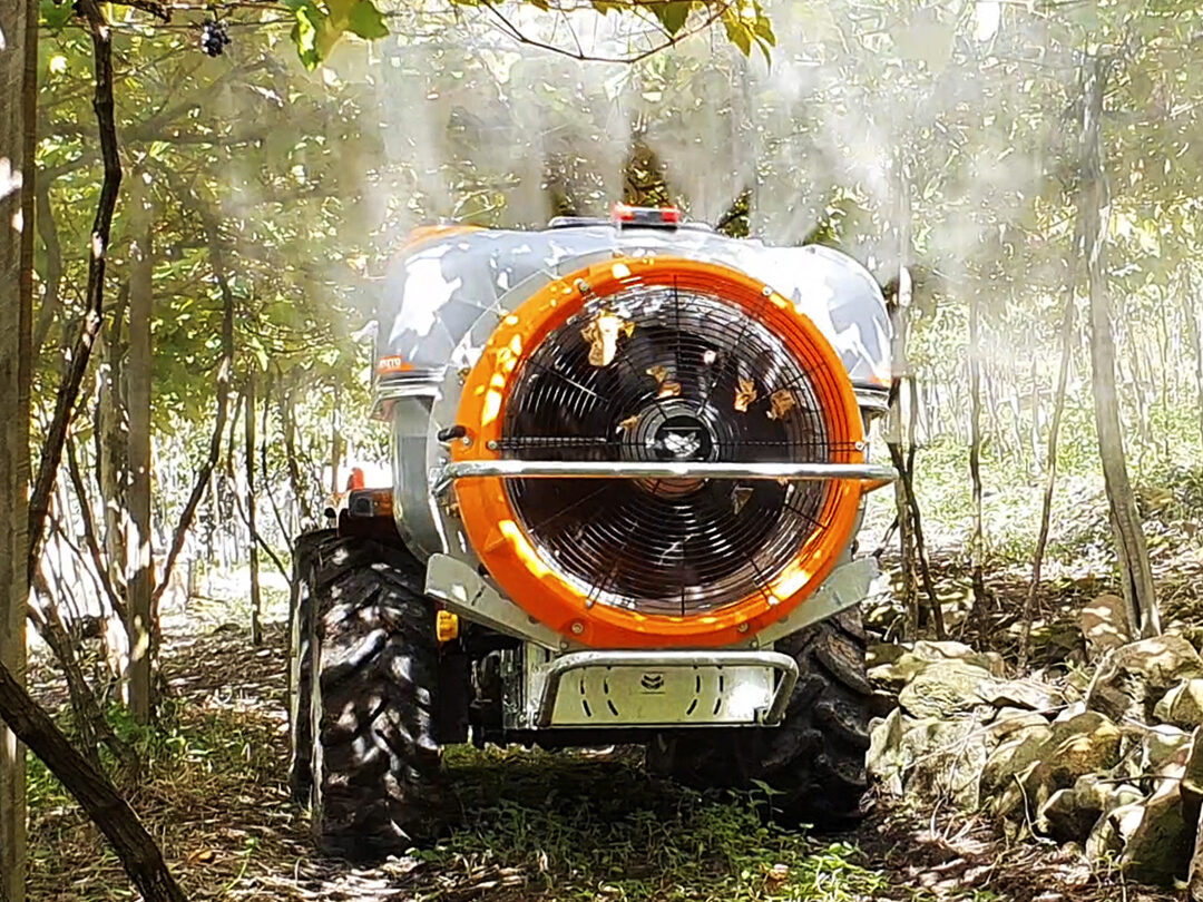 - Alta eficiência de cobertura: o sistema de ventilação garante pulverização uniforme, atingindo folhas e cachos em diferentes sistemas de condução;