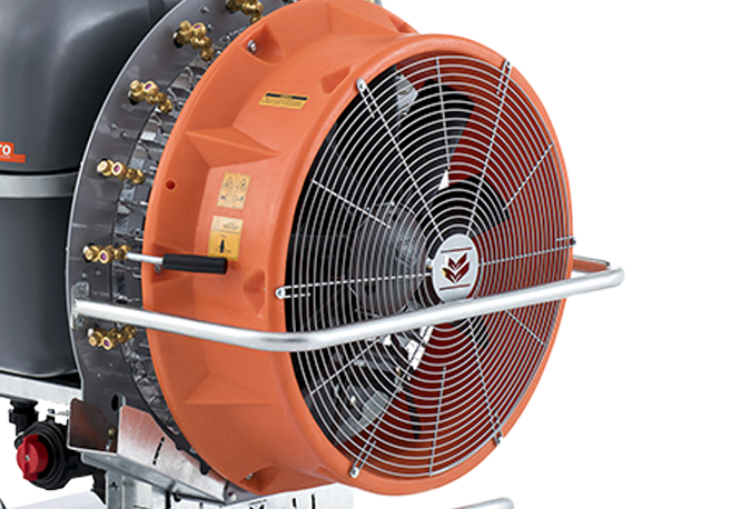 Disponível com turbinas de 600 mm, 700 mm ou 800 mm, permitindo ajustar o fluxo de ar conforme a densidade da cultura e a necessidade operacional.